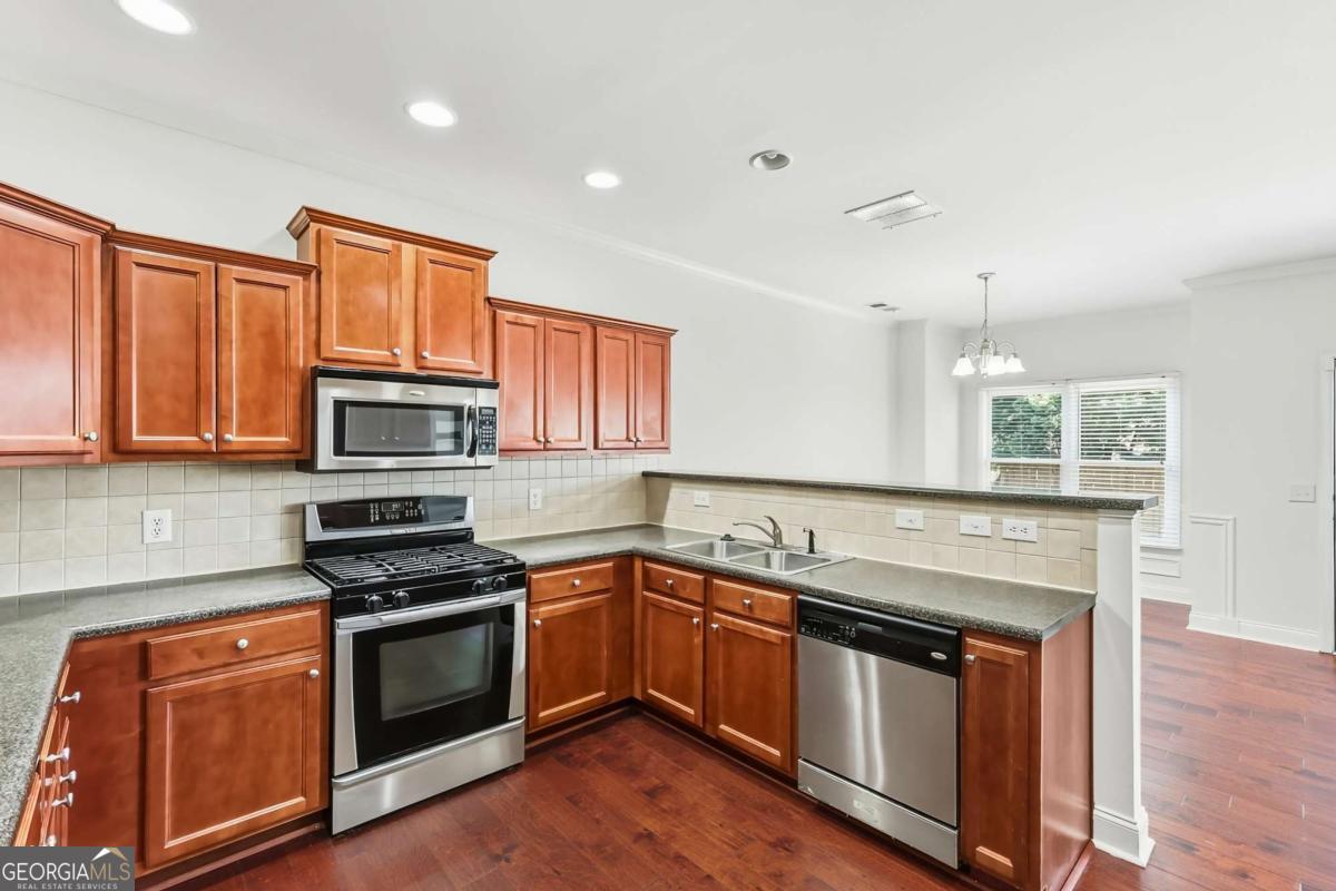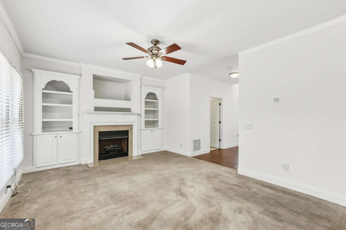 Welcome home to 1923 Thomas Pointe Trace, a beautifully maintained residence nestled in the quiet and sought-after Village at Nelms Pointe community. This 1,930-square-foot home features a thoughtful open-concept floor plan designed for both comfort and functionality. The main level welcomes you with an inviting fireside living room-complete with custom built-in bookcases-that flows effortlessly into the dining area and a modern kitchen. Home chefs will appreciate the stained cabinetry, stainless steel appliances, and a convenient breakfast bar that overlooks the family room, making it a perfect hub for entertaining. Upstairs, the oversized primary suite serves as a true retreat, boasting elegant trey ceilings, a massive walk-in closet, and a spa-inspired ensuite bathroom with double vanities, a deep soaking tub, and a separate shower. Two additional well-sized bedrooms share a full bath, providing plenty of space for family, guests, or a dedicated home office. Outside, the private, fully fenced backyard and patio offer a serene setting for weekend cookouts or quiet morning coffee. One of the standout features of this property is its location - residents enjoy access to top-tier Gwinnett County schools. Conveniently located near local parks, shopping, and dining, this home offers the perfect blend of suburban tranquility and modern convenience.