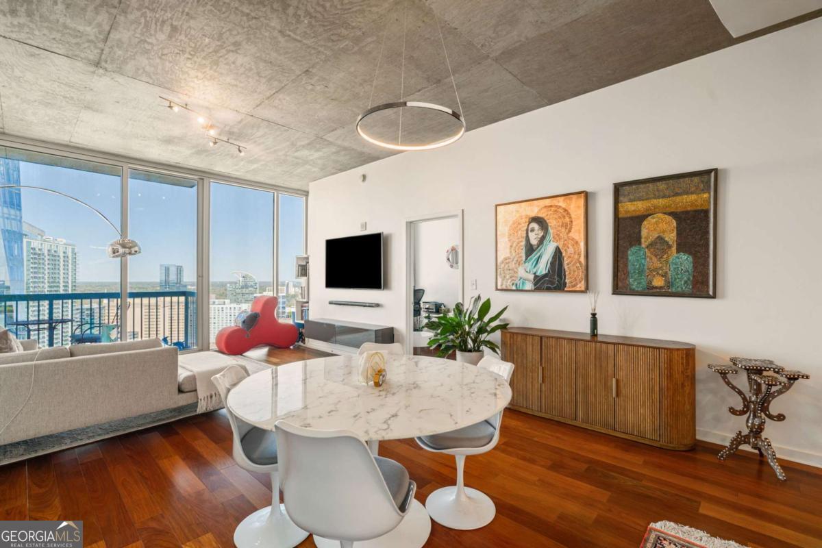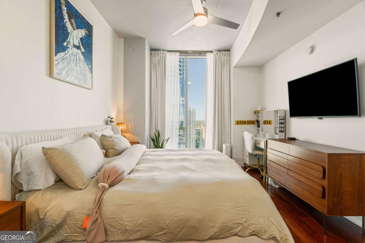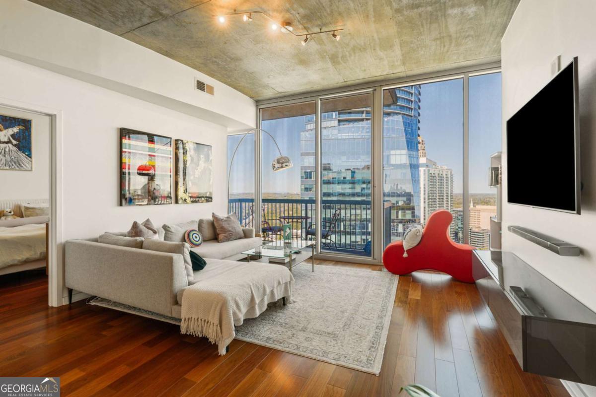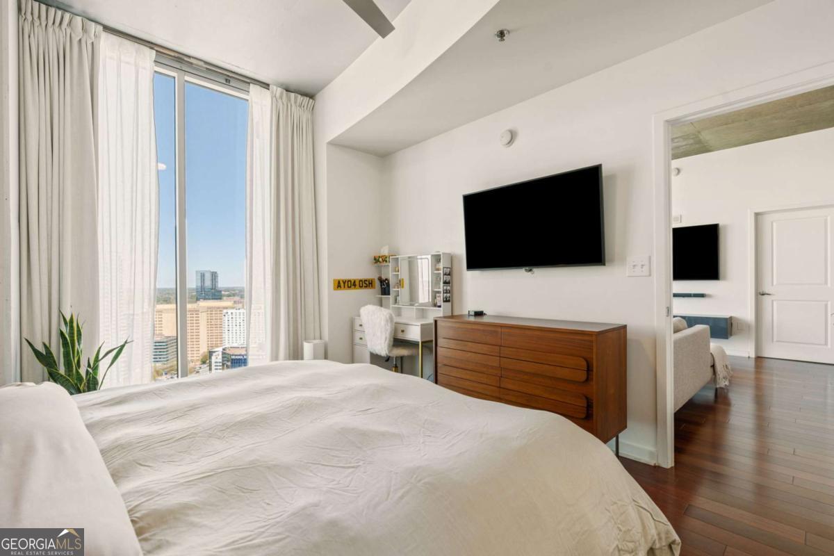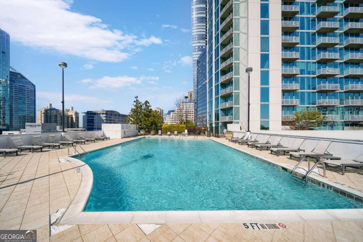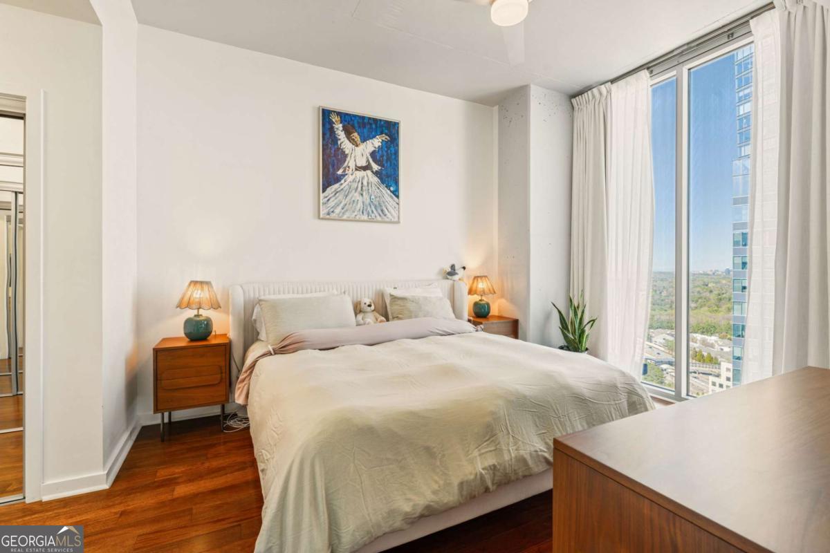 Experience the pinnacle of urban sophistication in this stunning 27th-floor residence at Realm Condominiums, located in the vibrant heart of Buckhead. This spacious two-bedroom, two-bathroom corner unit boasts an open-concept floor plan framed by dramatic floor-to-ceiling windows that flood the home with natural light and offer breathtaking, unobstructed views of the Atlanta skyline. The modern kitchen is a chef's delight, featuring sleek stone countertops, a breakfast bar, and stainless steel appliances, including refrigerator. The primary suite serves as a true sanctuary, highlighted by a stunningly renovated bathroom with a walk-in shower and custom-designed walk-in closets. With 10-foot ceilings and a private balcony, every inch of this 1,238-square-foot home feels airy and expansive.Beyond the unit, Realm offers a resort-style lifestyle with a multimillion-dollar suite of amenities. Residents enjoy a 24/7 concierge, a two-level state-of-the-art fitness center, and a rooftop saltwater pool with an expansive sundeck and fire pit. The building also features two newly renovated clubrooms, a business center, and a private pet walk, with high-speed internet included in the HOA dues. Perfectly positioned for "Live, Work, Play," you are just steps away from the PATH400 trail, the luxury shops at Lenox Square and Phipps Plaza, and a world-class dining scene. With the Buckhead MARTA station only two blocks away and easy access to GA-400, this residence offers the ultimate blend of luxury, convenience, and connectivity.