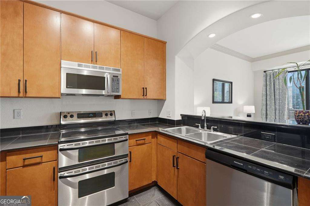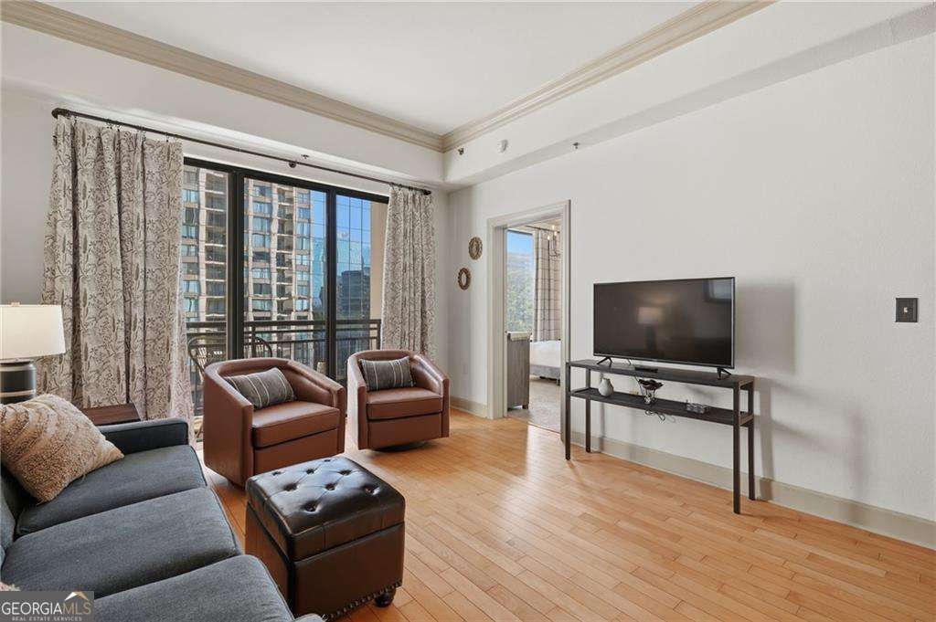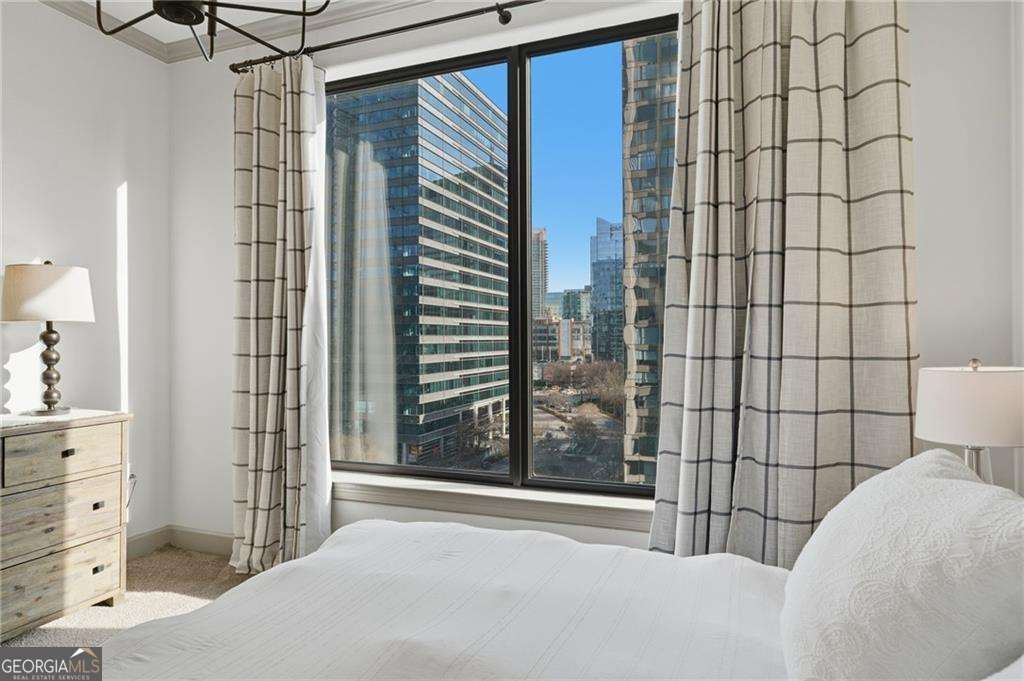 This sophisticated 10th floor unit at the Paramoount offers elegance and comfort from the moment you step inside. The open floor plan is framed by soaring 10-foot ceilings and filled with natural light, creating the perfect space for both everyday living and entertaining. The kitchen is designed with style and functionality in mind-featuring stainless steel appliances, granite countertops, and a generous breakfast bar for casual dining. The spacious bedroom provides a serene retreat, complete with breathtaking city views overlooking the pool, a walk-in closet, and a tub/shower combination. At Paramount, residents enjoy world-class amenities rarely found in the city: 24/7 concierge, outdoor and indoor theaters, a heated saline pool, tennis courts, two state-of-the-art fitness centers, private cabanas, grilling stations, a coffee bar, and professional conference rooms. Tucked away on a quiet street just one block from Peachtree Road and adjacent to the Waldorf Astoria, this location blends tranquility with convenience. Enjoy immediate access to Buckhead's best restaurants, luxury shopping, and major commuter routes. Experience the ultimate in urban living-schedule your private tour today and discover why Paramount at Buckhead remains one of Atlanta's most sought-after addresses.