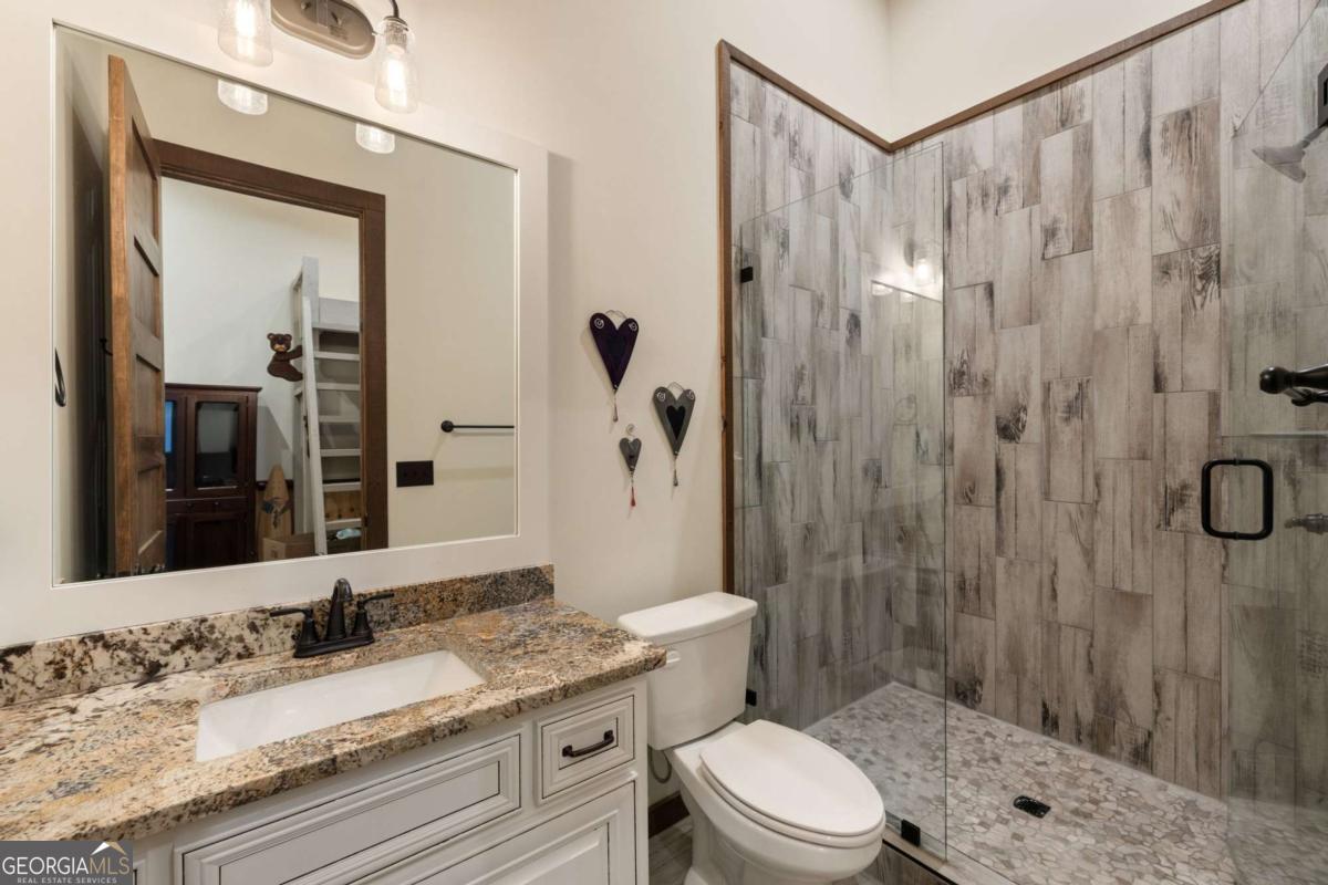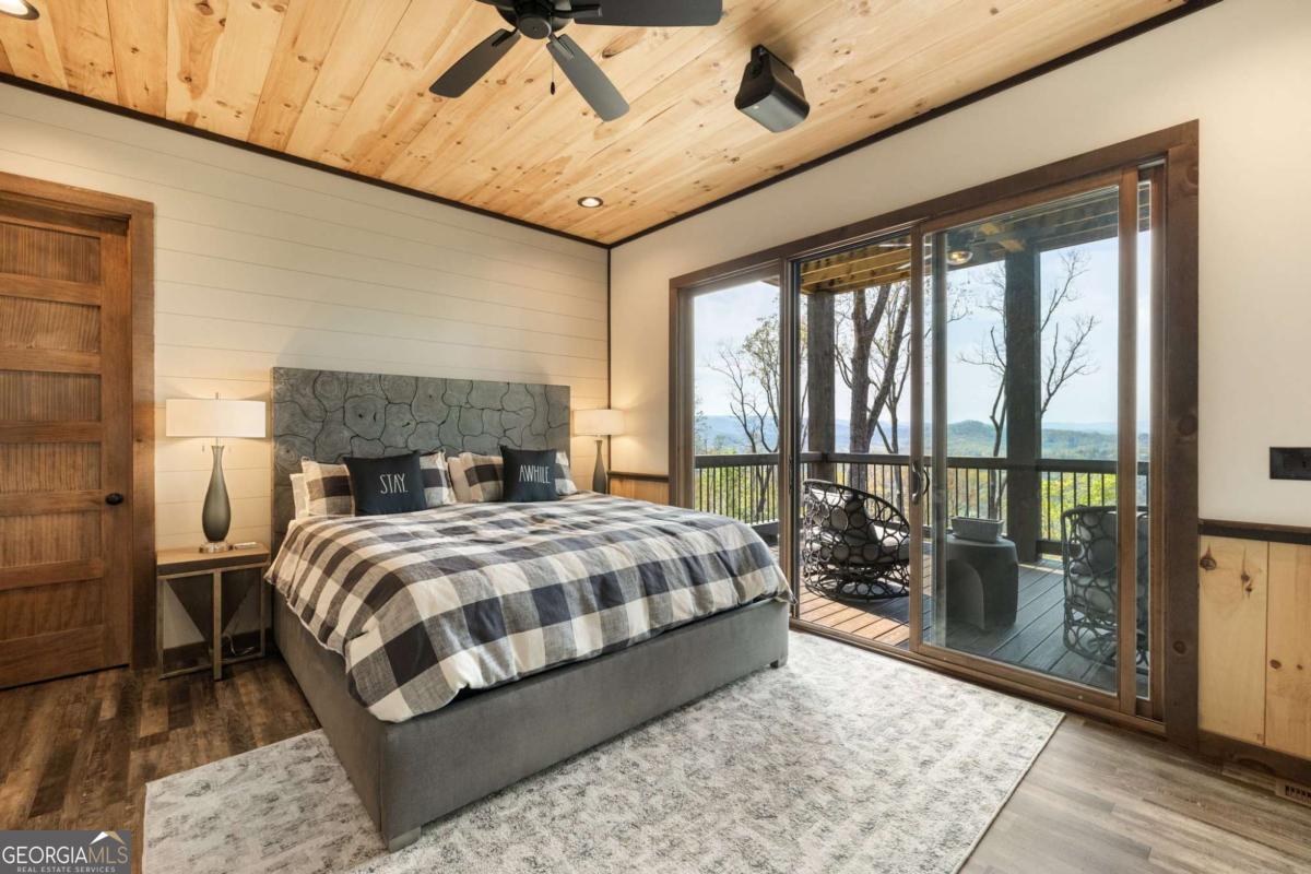 This remarkable residence flawlessly marries the timeless charm of craftsman architecture with the sleek elegance of modern design. Nestled on 1.5 acres of picturesque land, this 4-bedroom, 4.5-bathroom home encompasses 4,100 square feet of luxury living space. Entering the home, you're welcomed by breathtaking mountain vistas that stretch as far as the eye can see. The fusion of styles is accentuated by the illuminated glass catwalk that hovers above the main floor, seamlessly connecting the living spaces. A custom metal staircase stands as a stunning centerpiece, leading to a loft and a master ensuite on the third level, complete with a private deck for tranquil moments. The kitchen is a culinary masterpiece, outfitted with Viking appliances and Siberian tiger granite countertops, making it perfect for family gatherings. Entertain with flair in the custom wine room, or relax outdoors on more than 1,800 square feet of covered deck space. The terrace level features a bunk room with six beds, ideal for hosting guests. Every corner of this property has been thoughtfully designed, from the fully landscaped surroundings to the artful furnishings that exude sophistication. This home offers the epitome of thoughtful design, where mountain vistas, architectural excellence, and contemporary comforts seamlessly intertwine to create an unparalleled living experience.